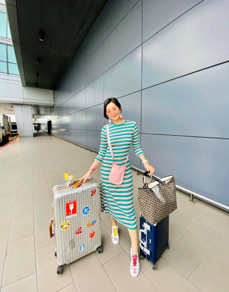 ↓出發前朵朵一起去送機,還順便示範穿搭馬麻的新墨鏡🕶️